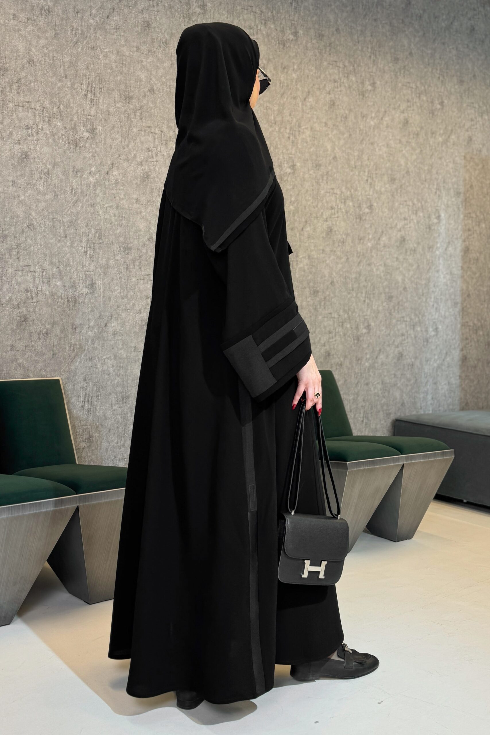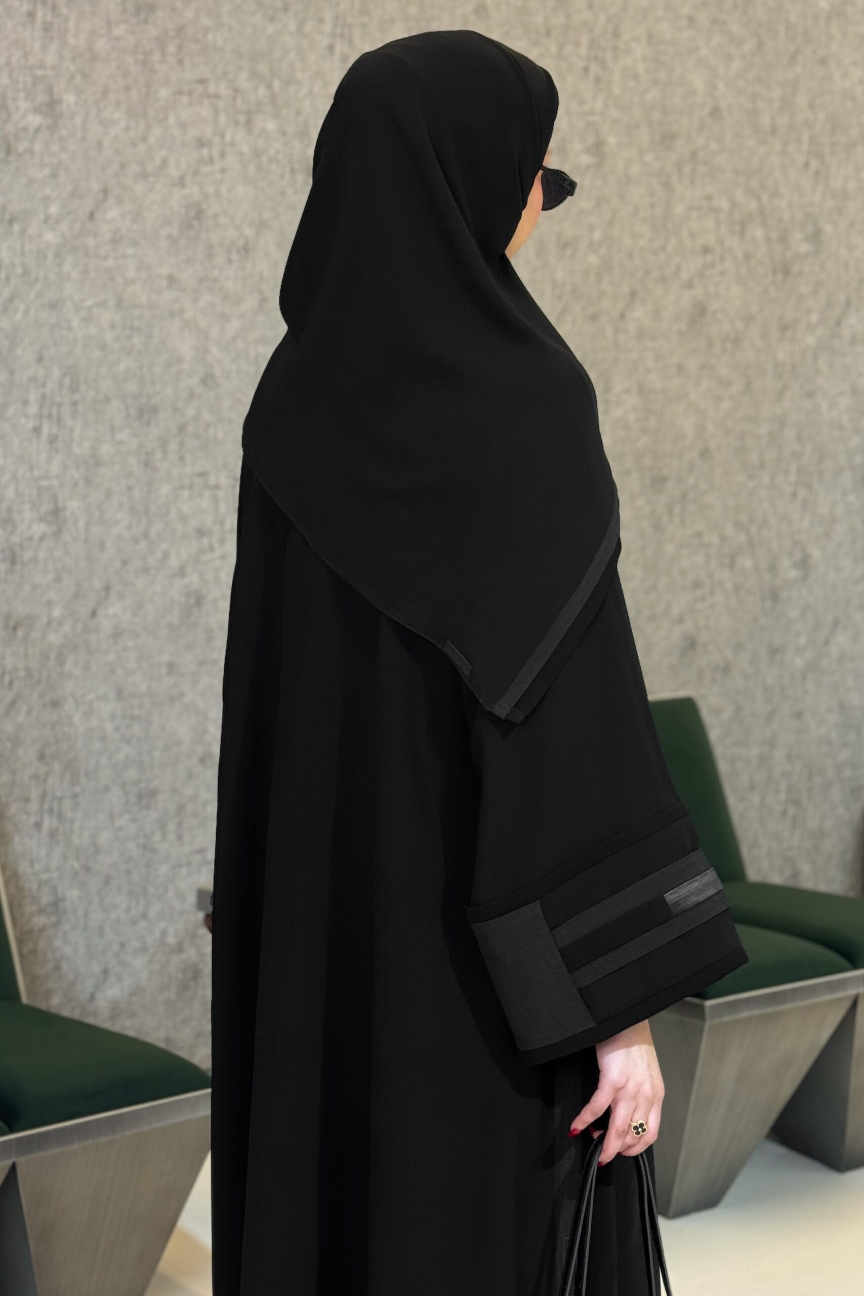 - جوانب العباية فيها خطوط من نفس أقمشة الأكمام