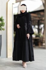 عباية سادة بأكمام ماسكة من قماش التفتة