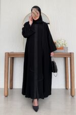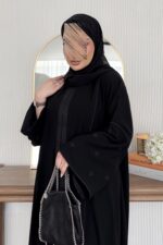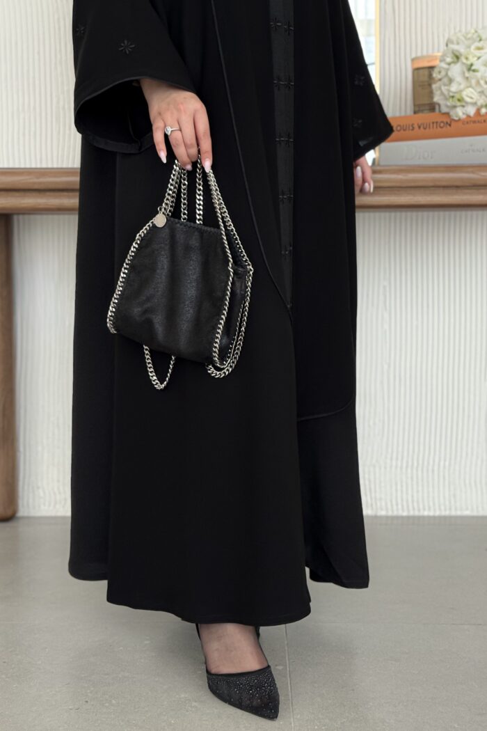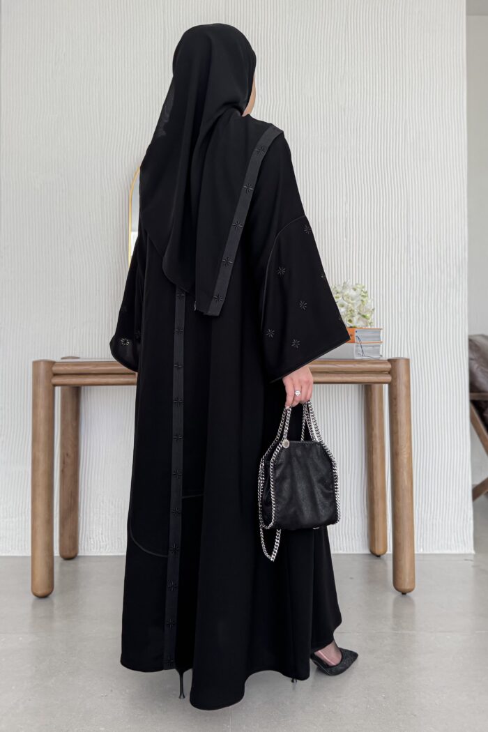 - تشكيلات ناعمة من التطريز على الأكمام والعباية من الأمام والخلف
