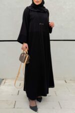 عباية سادة بأكمام ماسكة من قماش التفتة