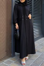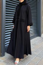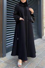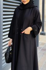 عباية سادة بأكمام ماسكة من قماش التفتة
