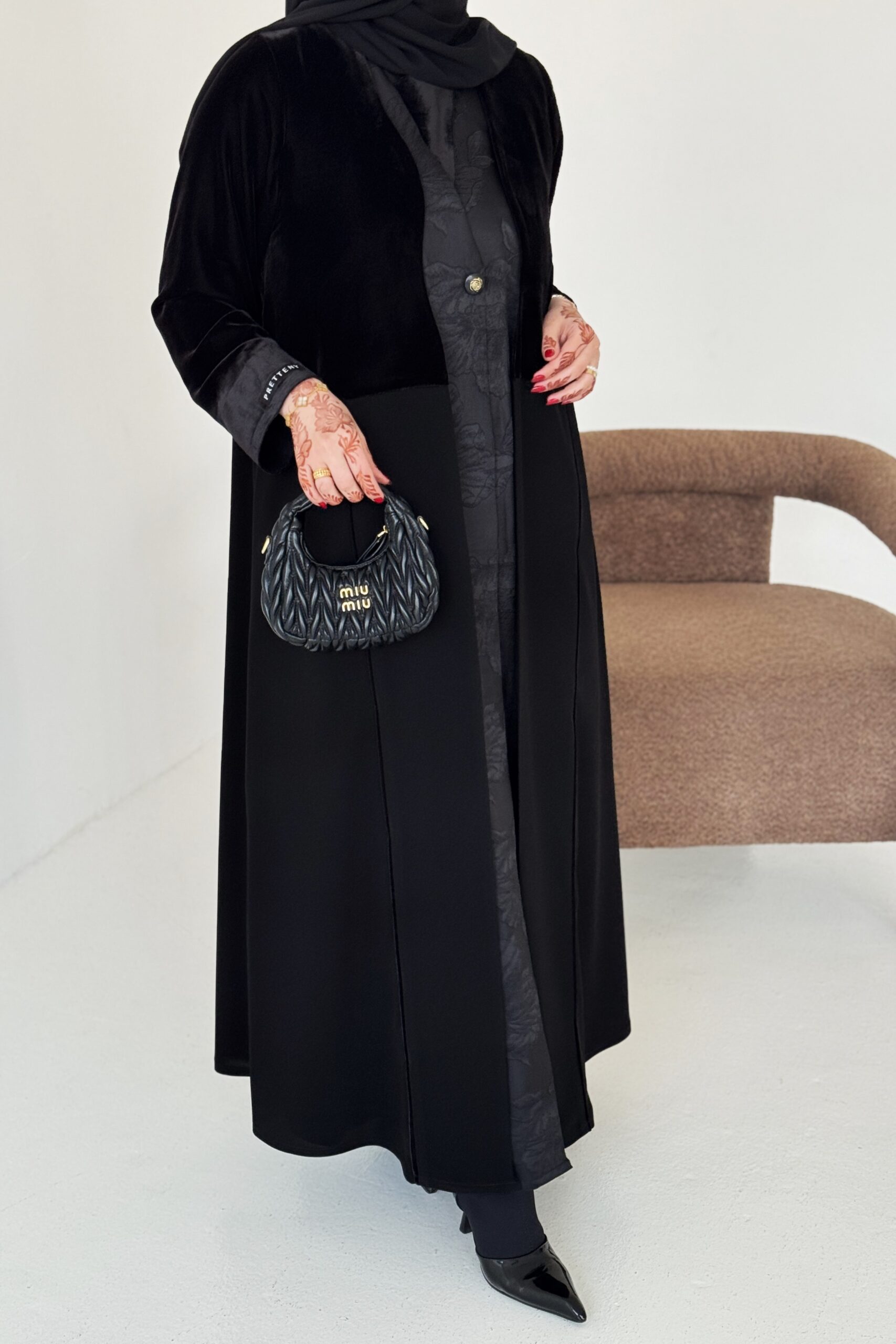 - الجزء العلوي مخمل أسود والسفلي قماش مارفي جت الأسود