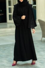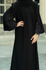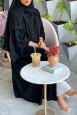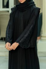 - تطريز يدوي أسود على الأكمام وعند تسكيرة العباية