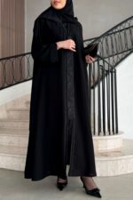 - خطوط من التطريز على الأكمام والعباية من الأمام