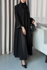عباية سادة بأكمام ماسكة من قماش التفتة