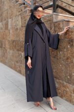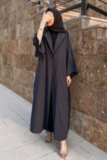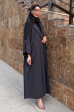 عباية سادة بأكمام ماسكة من قماش التفتة