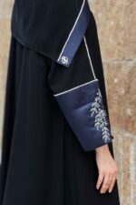 تصميم بأكمام زاهية تمزج اللون الكحلي بالفضي..
