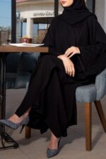 عباية سادة بأكمام ماسكة من قماش التفتة