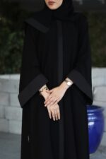- لمسات من قماش الكريب على الأكمام وعند تسكيرة العباية