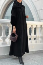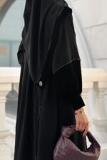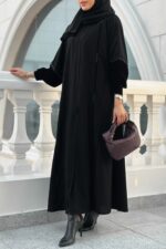 عباية سادة بأكمام ماسكة من قماش التفتة