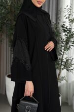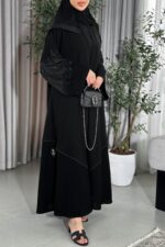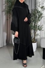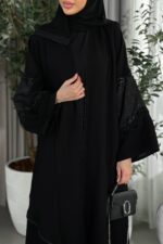 عباية سادة بأكمام ماسكة من قماش التفتة