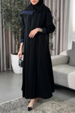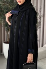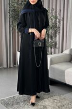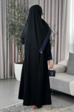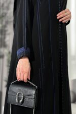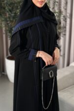 - تفاصيل باللون الكحلي من التطريز والخياطة