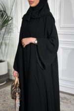 عباية سادة بأكمام ماسكة من قماش التفتة