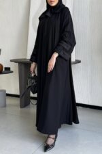 - تطريز منقط على الأكمام وتداخل للأقمشة