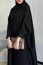 عباية سادة بقصة واسعة وتصميم ناعم نهاية الأكمام $87.45 شامل الضريبةS1015