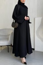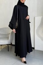 عباية سادة بأكمام ماسكة من قماش التفتة