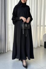 عباية سادة بأكمام ماسكة من قماش التفتة