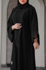قماش بتشكيلة أنيقة يتوسط العباية من الأمام