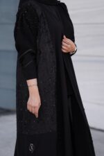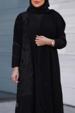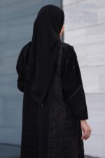 - خرز متناثر على أجزاء مختلفة من العباية بشكل متقن